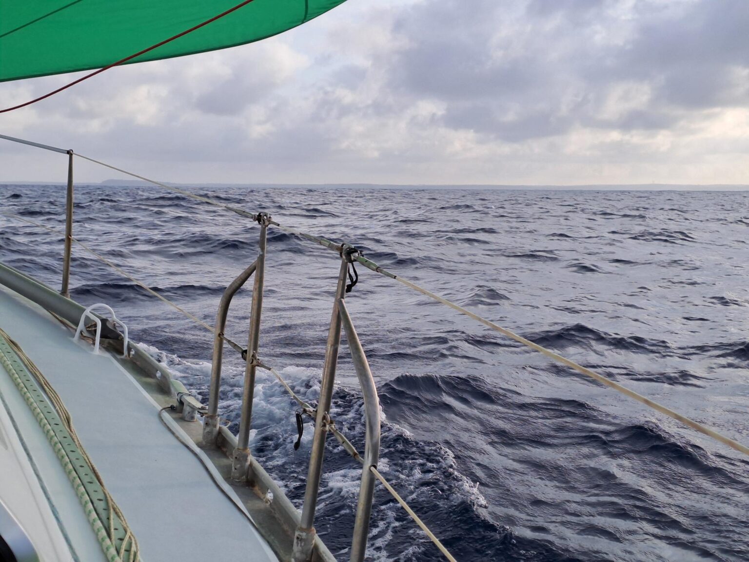 H28 : le vent est arrière et plus faible. On navigue au portant. L’allure est plus calme et on peut se reposer. On y est bientôt