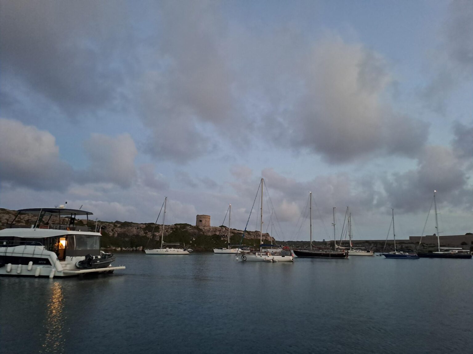 H37 : ça y est nous sommes mouillés dans un tout petit bassin proche d’un fort sur l’île de Minorque.