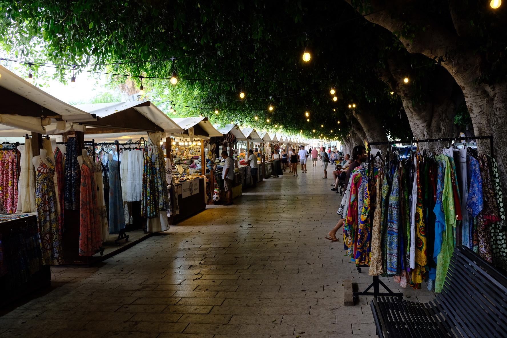 La grande rue principale commence a la Porta Real O Ferdinandea. L’accès se fait en passant devant des stands de vendeurs d’objets artisanaux et spécialités locales alignés le long d’un passage arboré. Une femme vendait un astucieux outil pour ramasser les figues de barbarie sans se piquer les doigts.