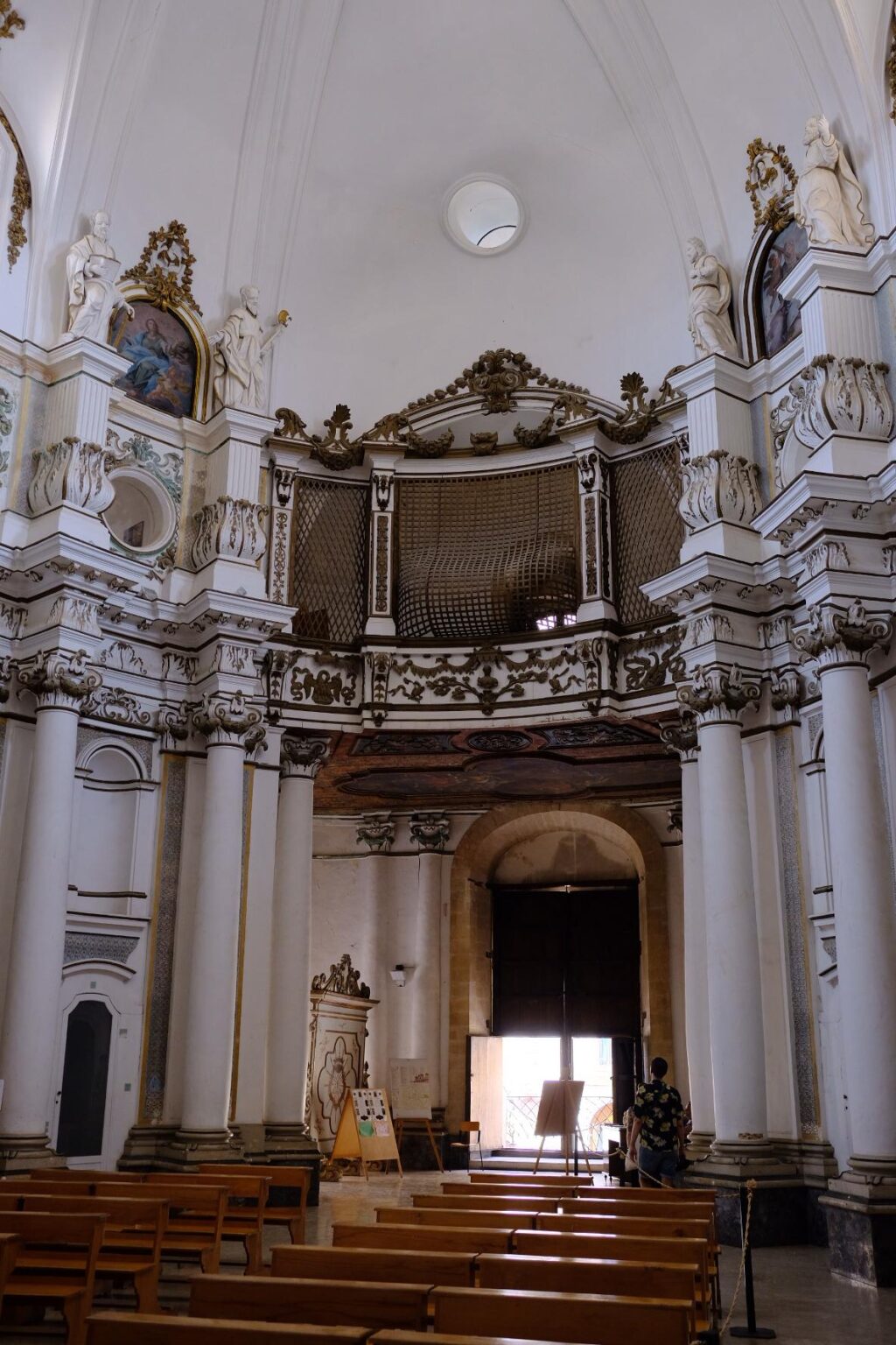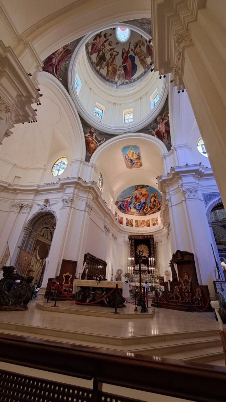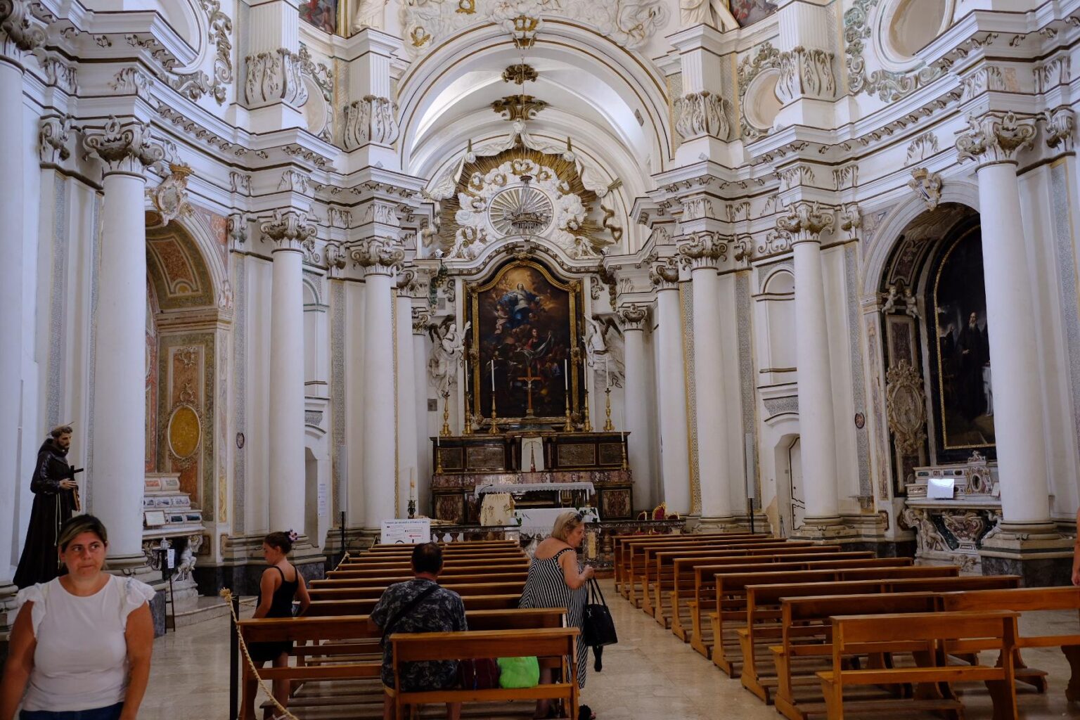 On commence par l’église di Santa Chiara 8. L’intérieur est tout blanc et décoré de sculptures noires. Tous les contours des colonnes, moulures et autre sont soulignés de noir également ce qui donne un bel ensemble.