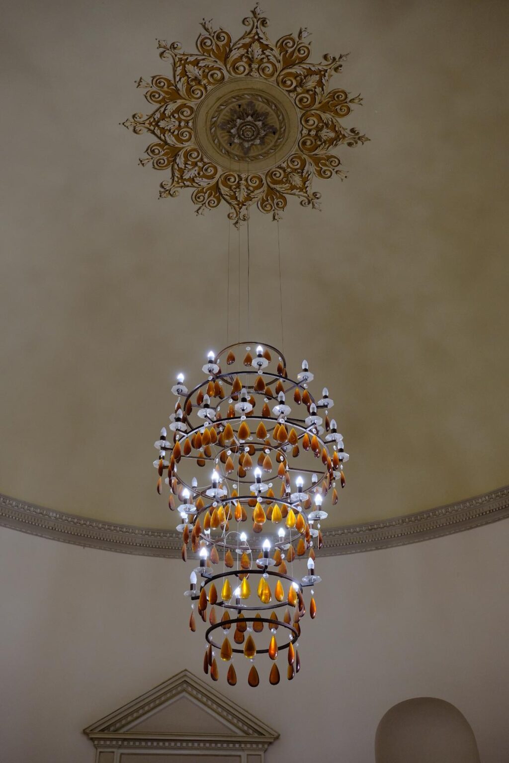 Un beau lustre orne le hall d’accueil.