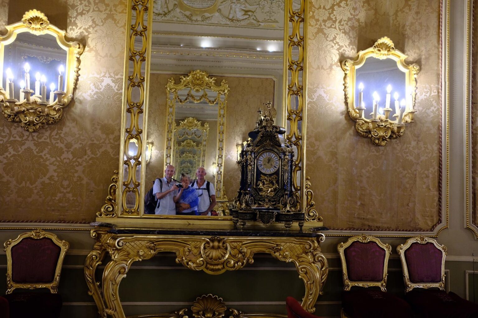 En entrant sur la gauche, on pénètre dans une salle ovale dont deux grands miroirs se font face.