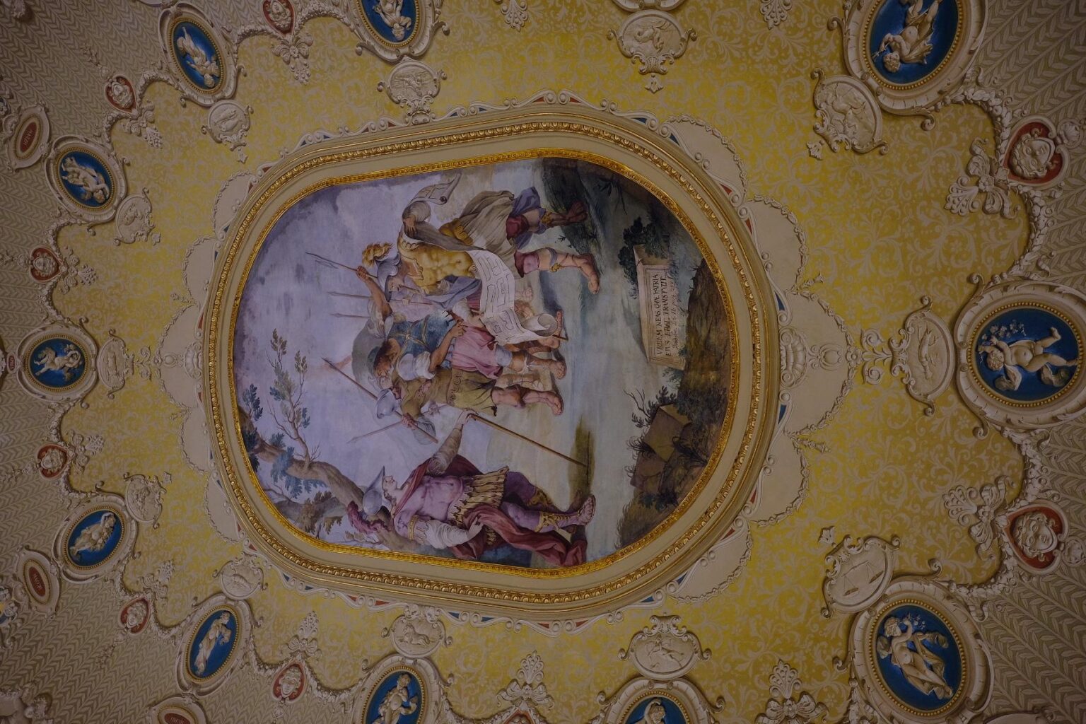 De jolies fresques sont peintes au plafond.