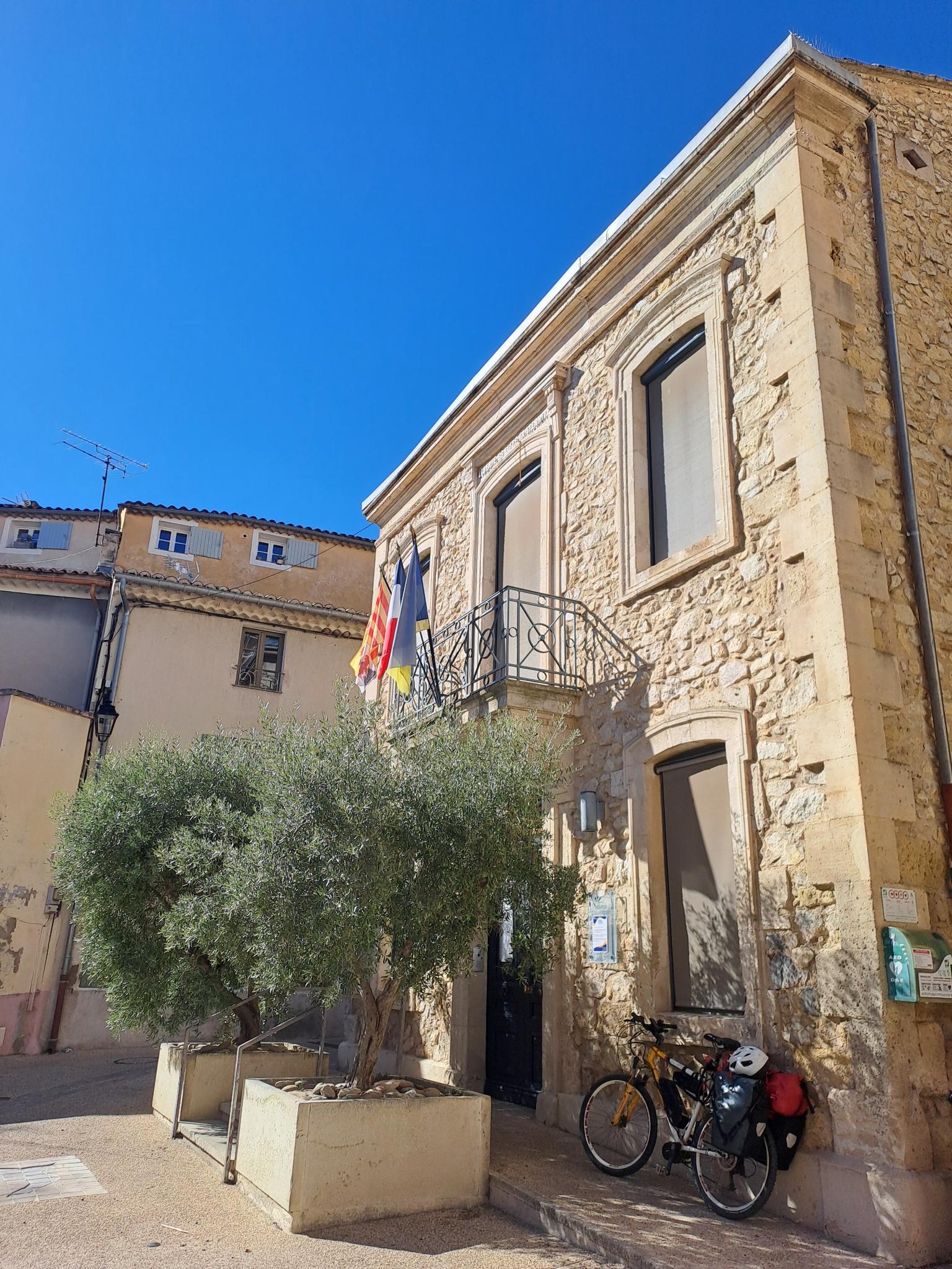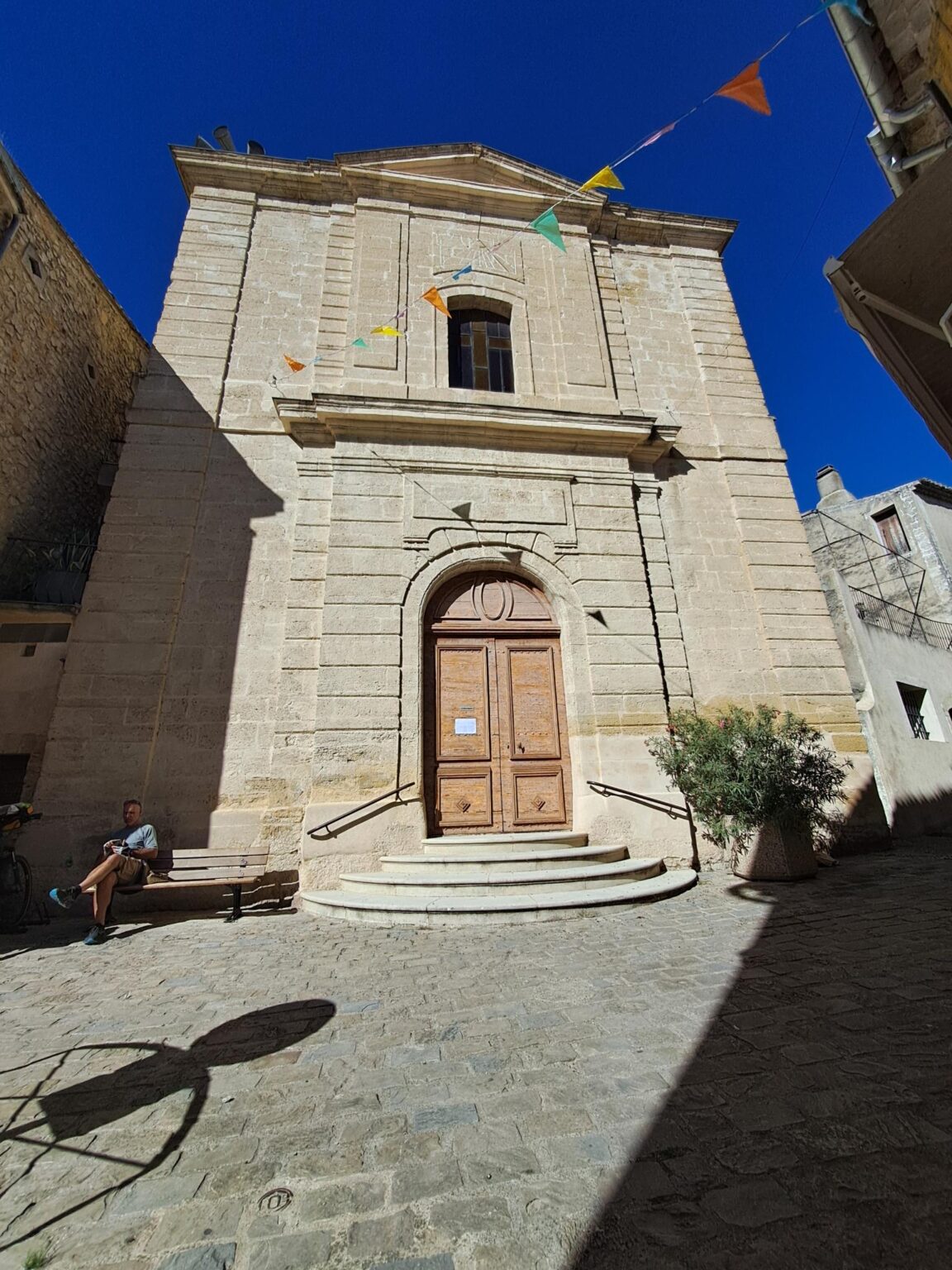 Une brève halte à Merindol devant l’église avant d’arriver au camping.
