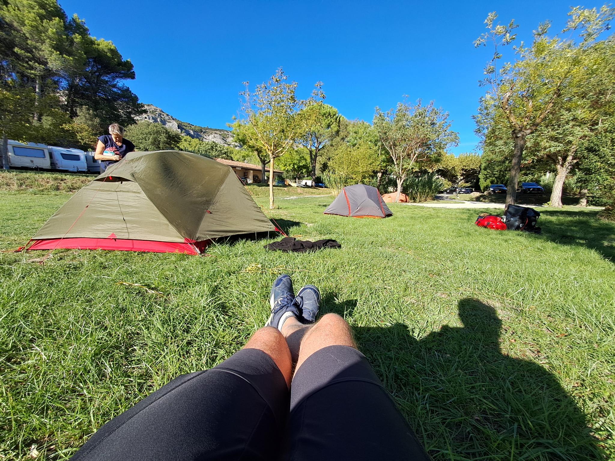 On pose nos tente et prenons la routine du soir, qui commence par l’apéro !