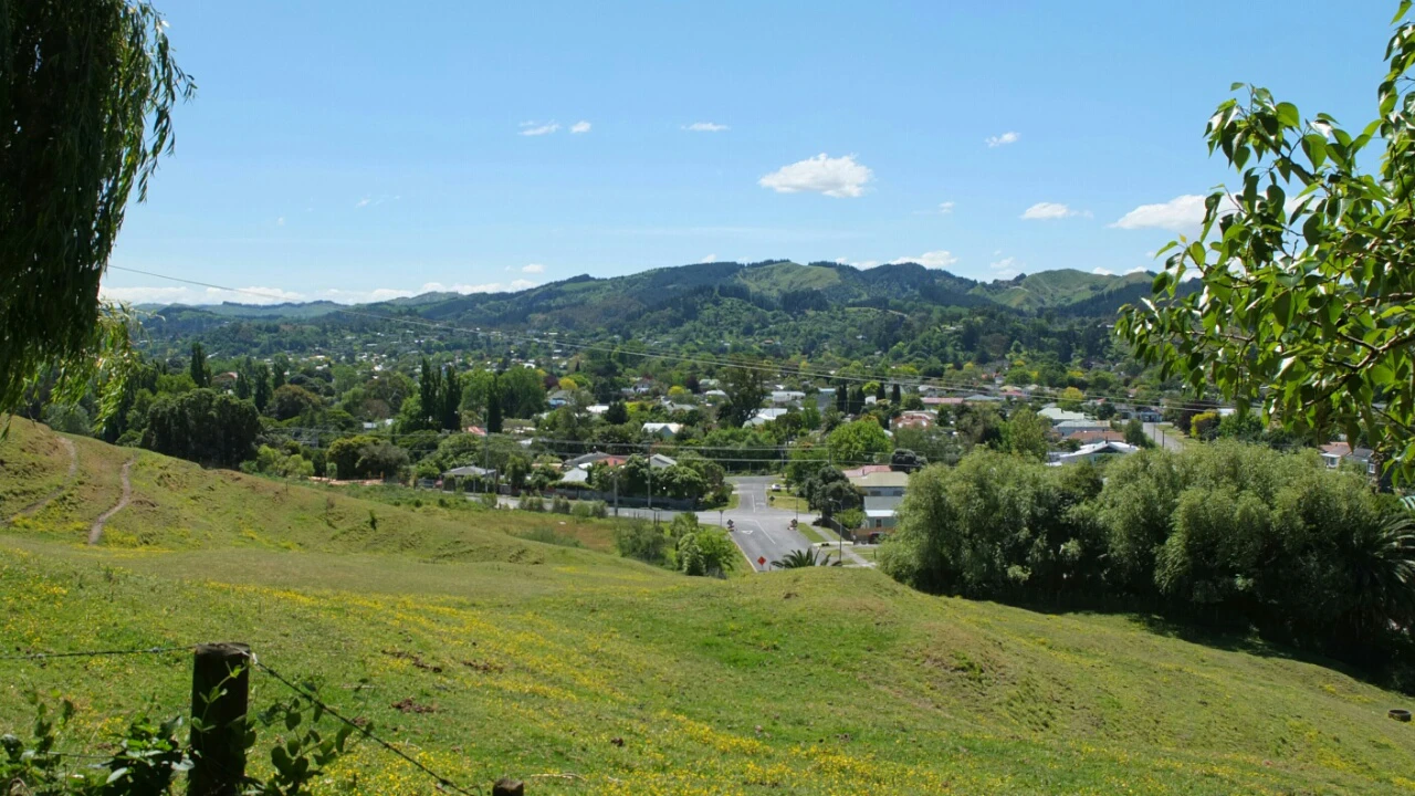Gisborne city center. The first day when I arrived, I ate along the Tūranganui river, a little beyond those two bridges, under to the bunch of trees.