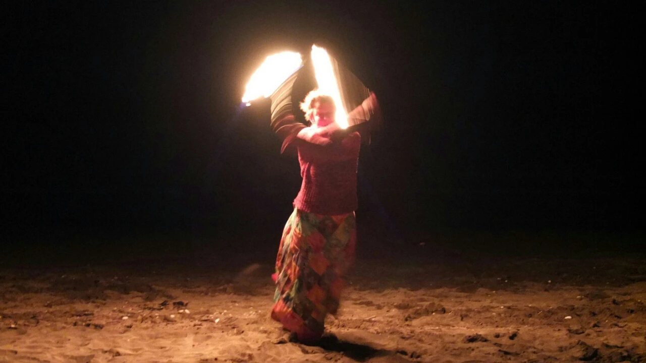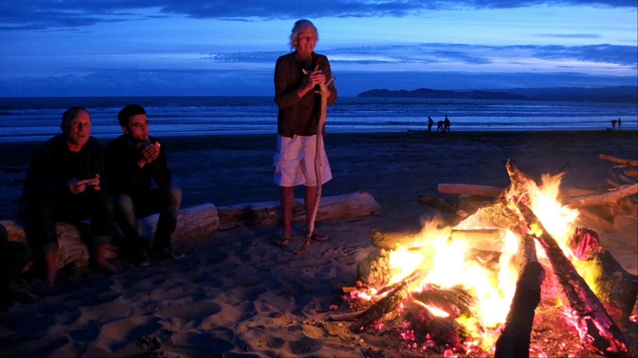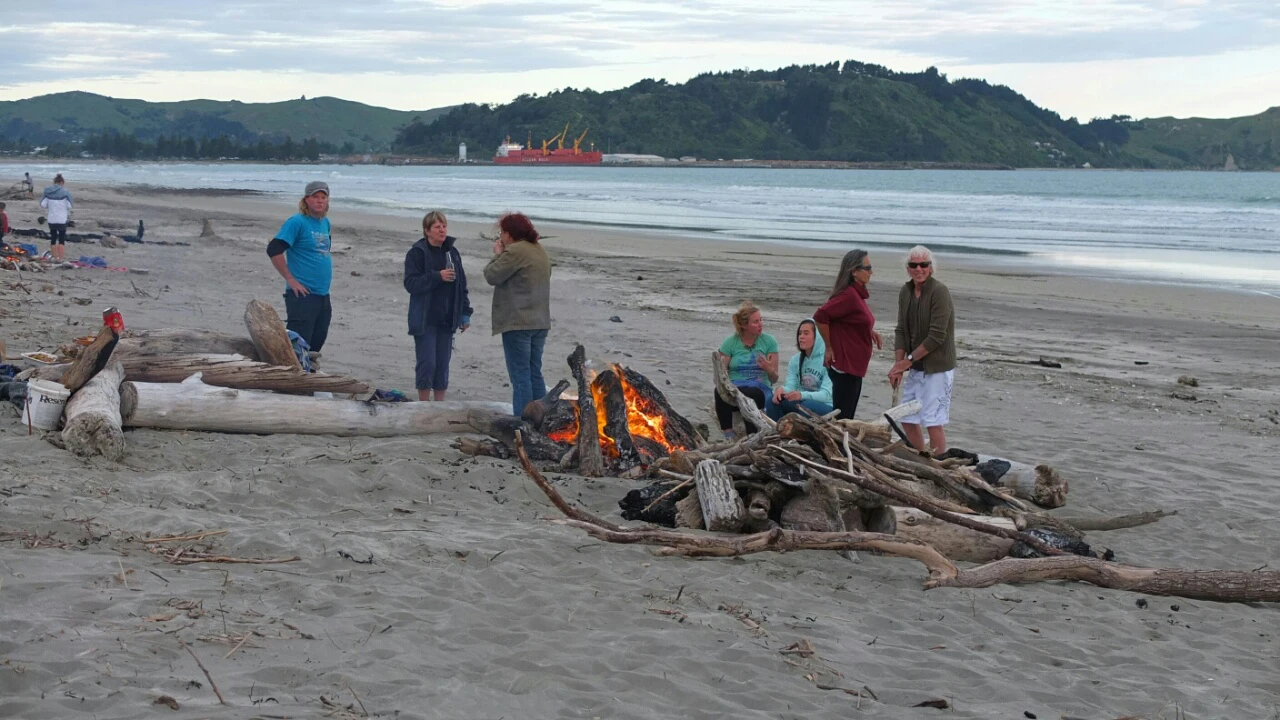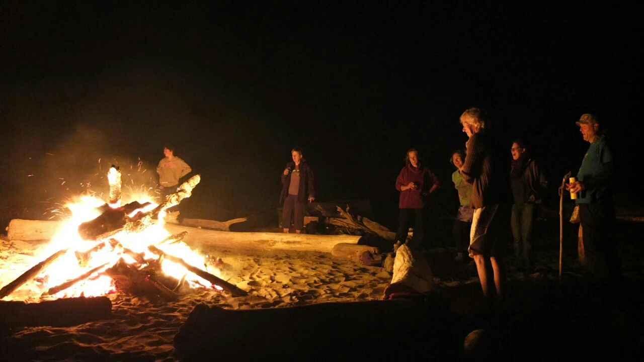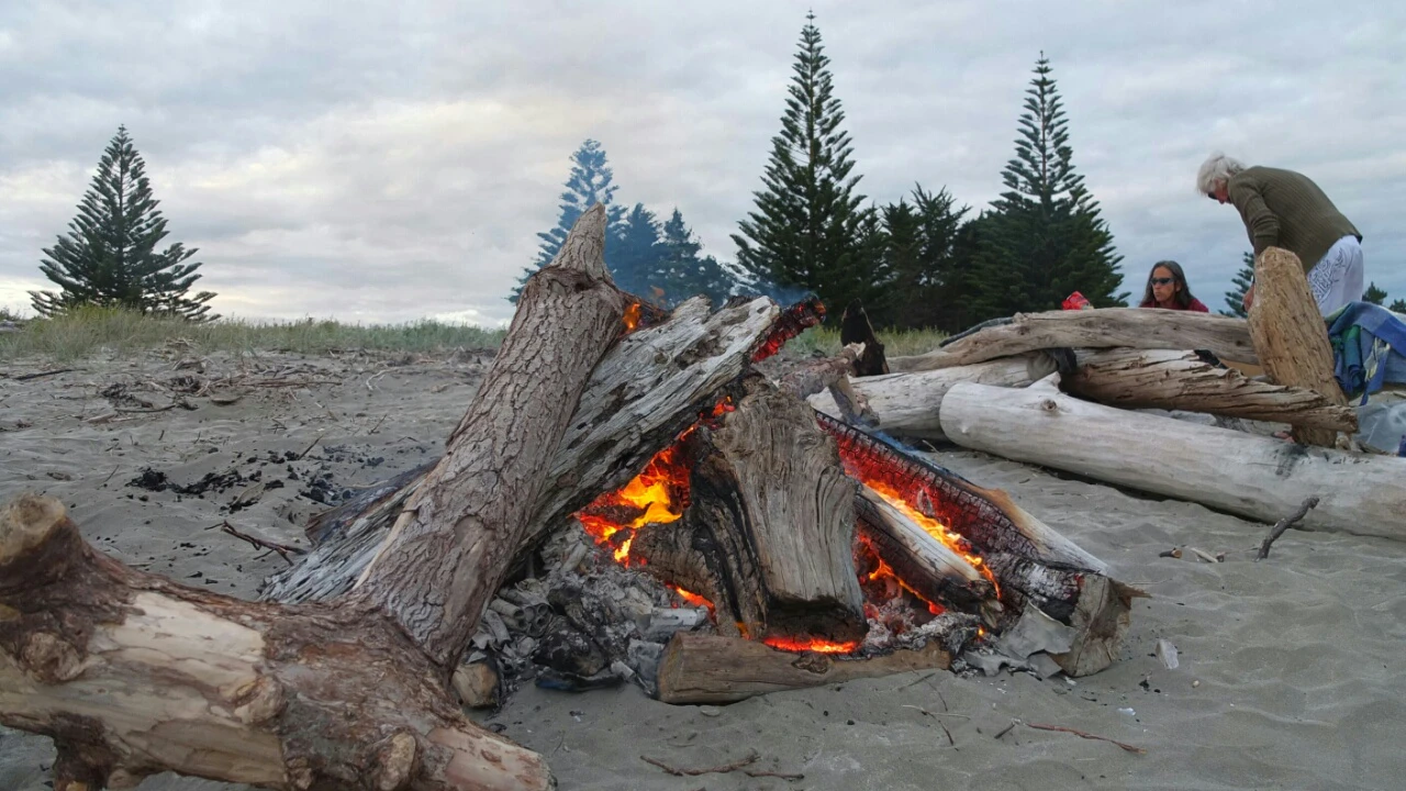 We have reached the beach with Jane, Chris, Tariq, Manuka, Brownie and Jane’s friends :-) The fire is already burning and we have so much wood for all the night, cool!
