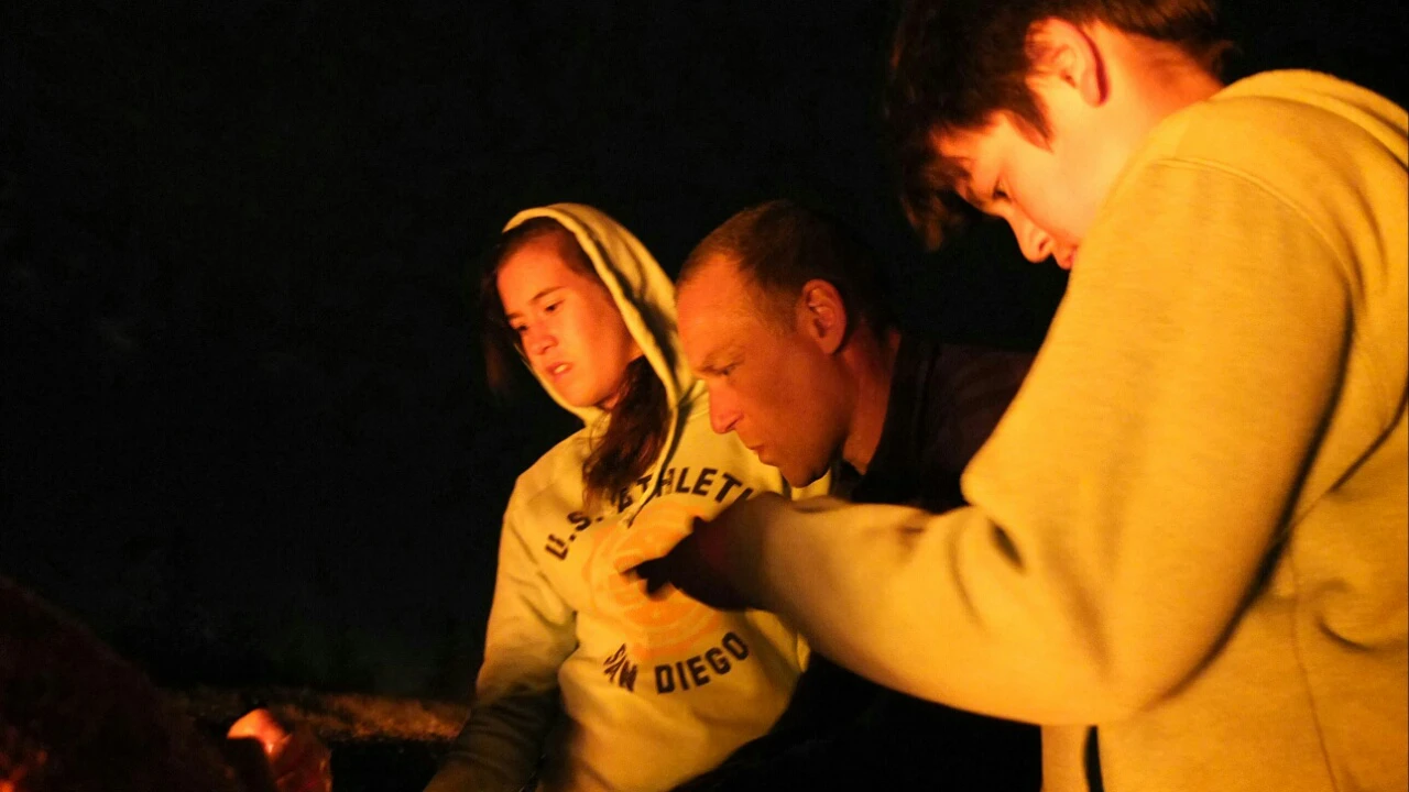 Next to us, children are making a big fire as well and they would like to burn the big branch but it looks like it’s too heavy for them. Come one, ho hiss, ho hiss!