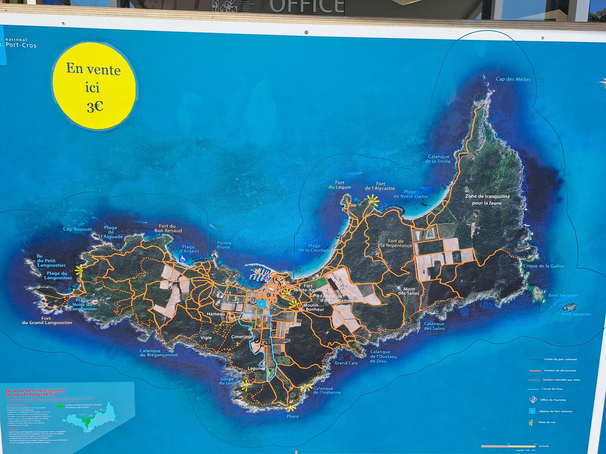 Pour cette deuxième journée en méditerranée, nous avons fait une visite de l'île de Porquerolles. L'île est située au large de Hyères. Nous sommes installés au mouillage devant la plage Notre Dame (voir le plant en photo en bas de page).