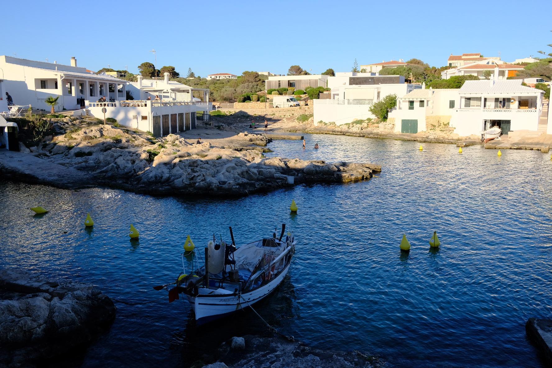 La petite maison avec un toit maçonné en blanc est une ancienne maison de pêcheur des années 1880. C’est la cabane typique de Minorque.