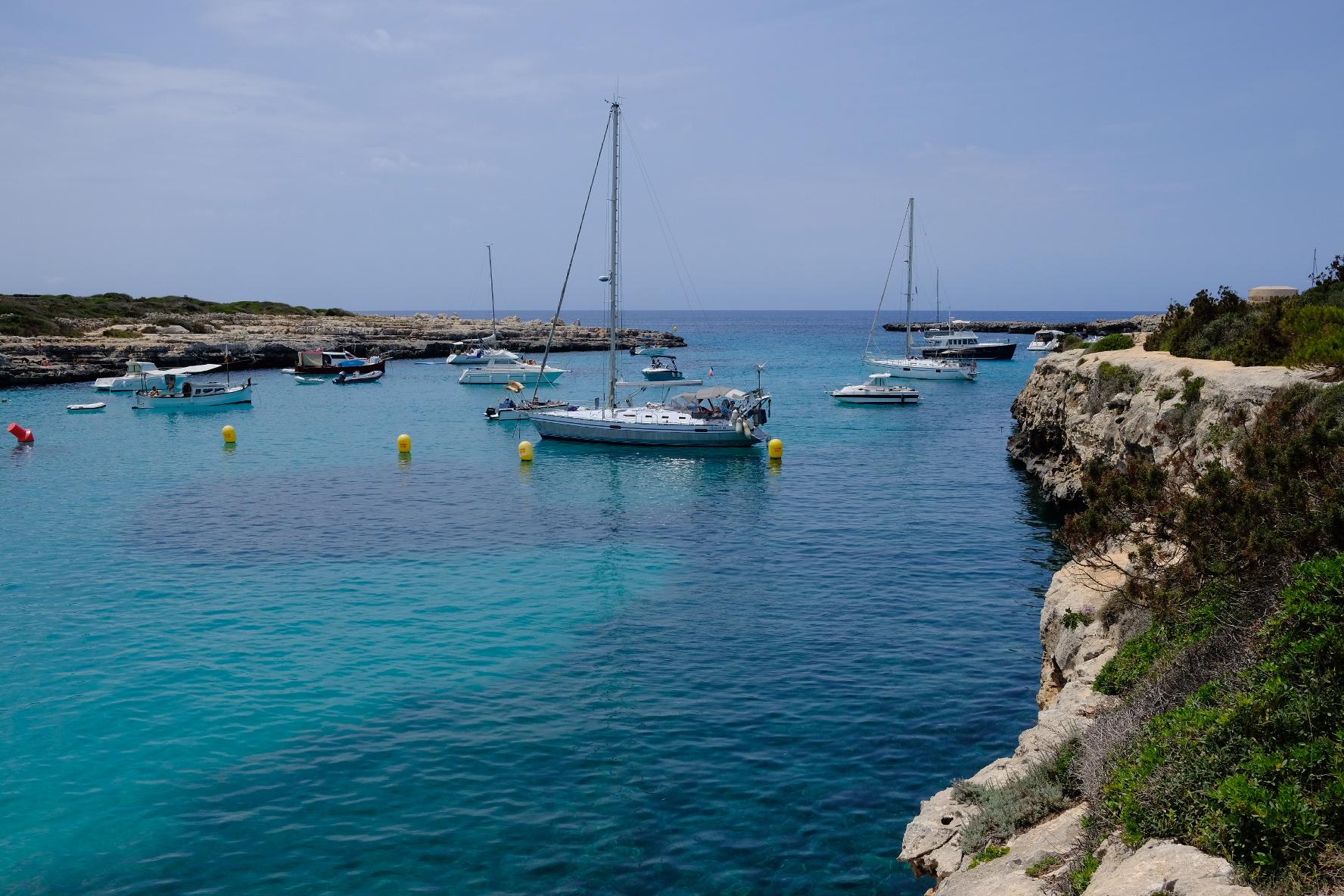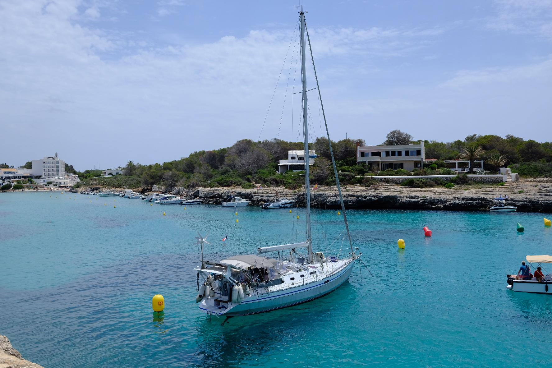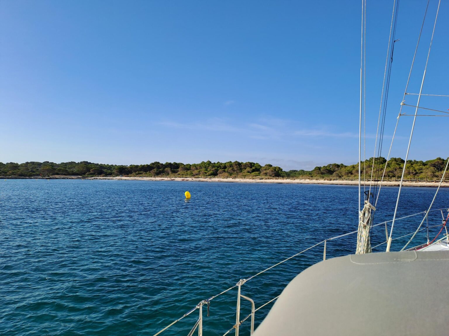 Puis on a mis les voiles vers la cala Son Saura, ou on était passé la veille ou il n’était pas possible d’y aller. On a mouillé le plus à droite possible pour éviter la houle. D’autres petit bateaux étaient déjà là et on était prêts à prendre la place si ils partaient. On attend 1h, et un des bateaux lève l’ancre.