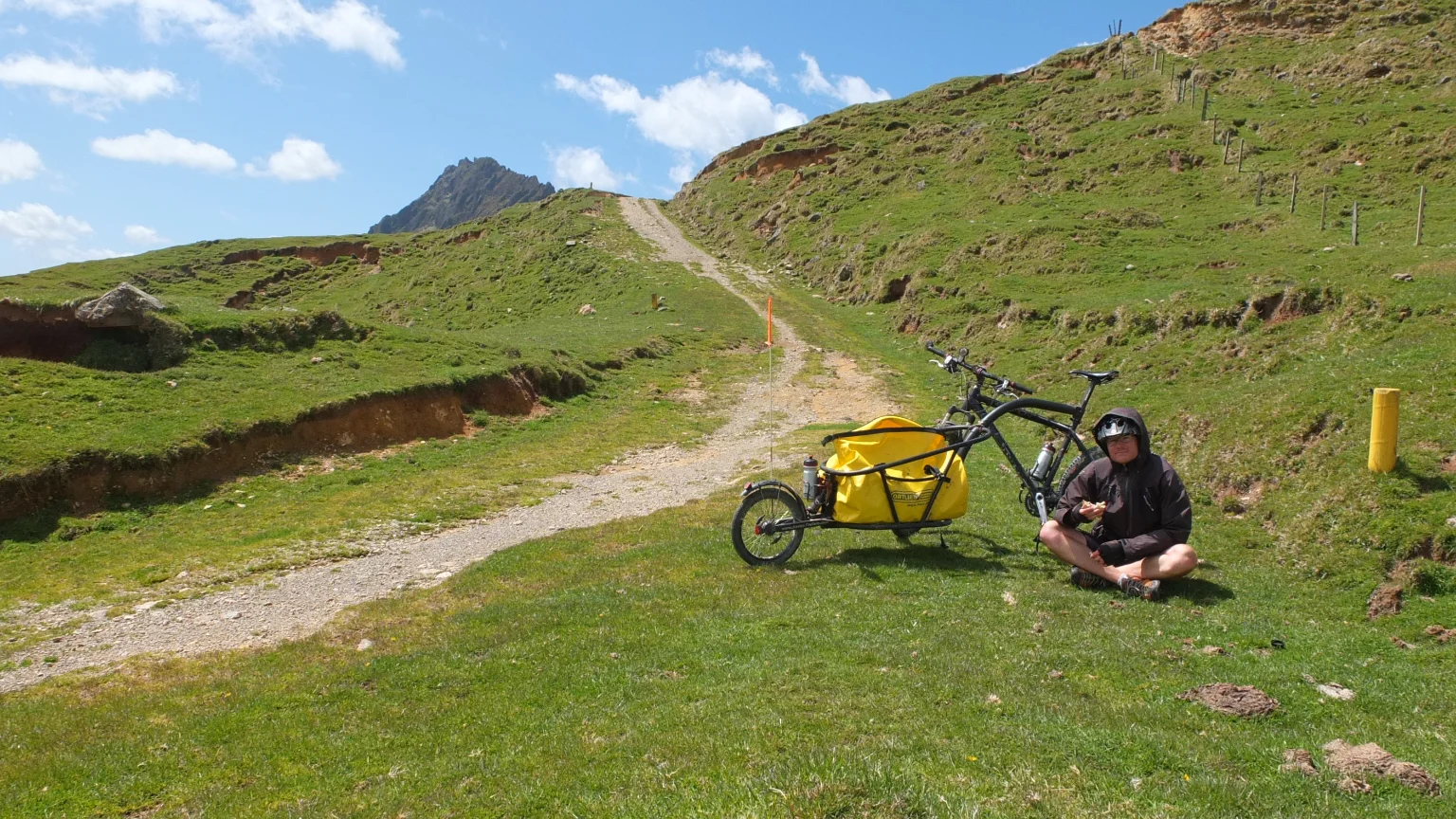 The bicycle track stops here. I found a spot on the side where I can kind of hide my bike for the night. Hopefully, no one finds it for a downhill.