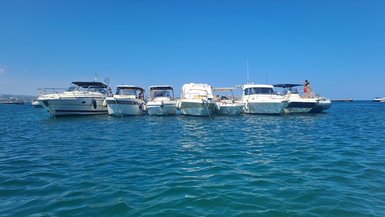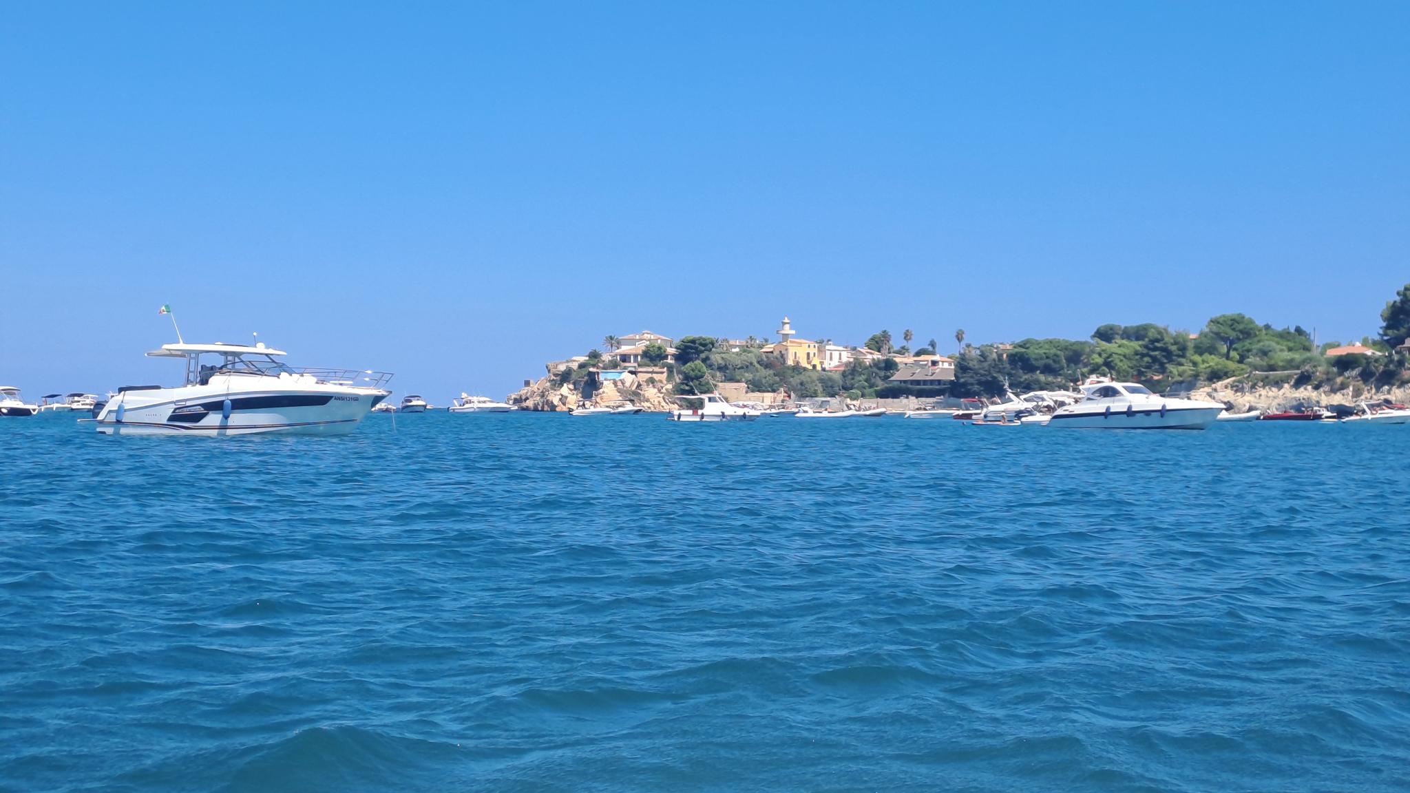 Il y a plein de petits bateaux au mouillage juste en face, certains sont tous accrochés ensemble par 2, 3, voir mêmes presque une dizaine ! C’est dimanche et les italiens se retrouvent en famille sur leurs petit youyous. Et évidement avec la musique !