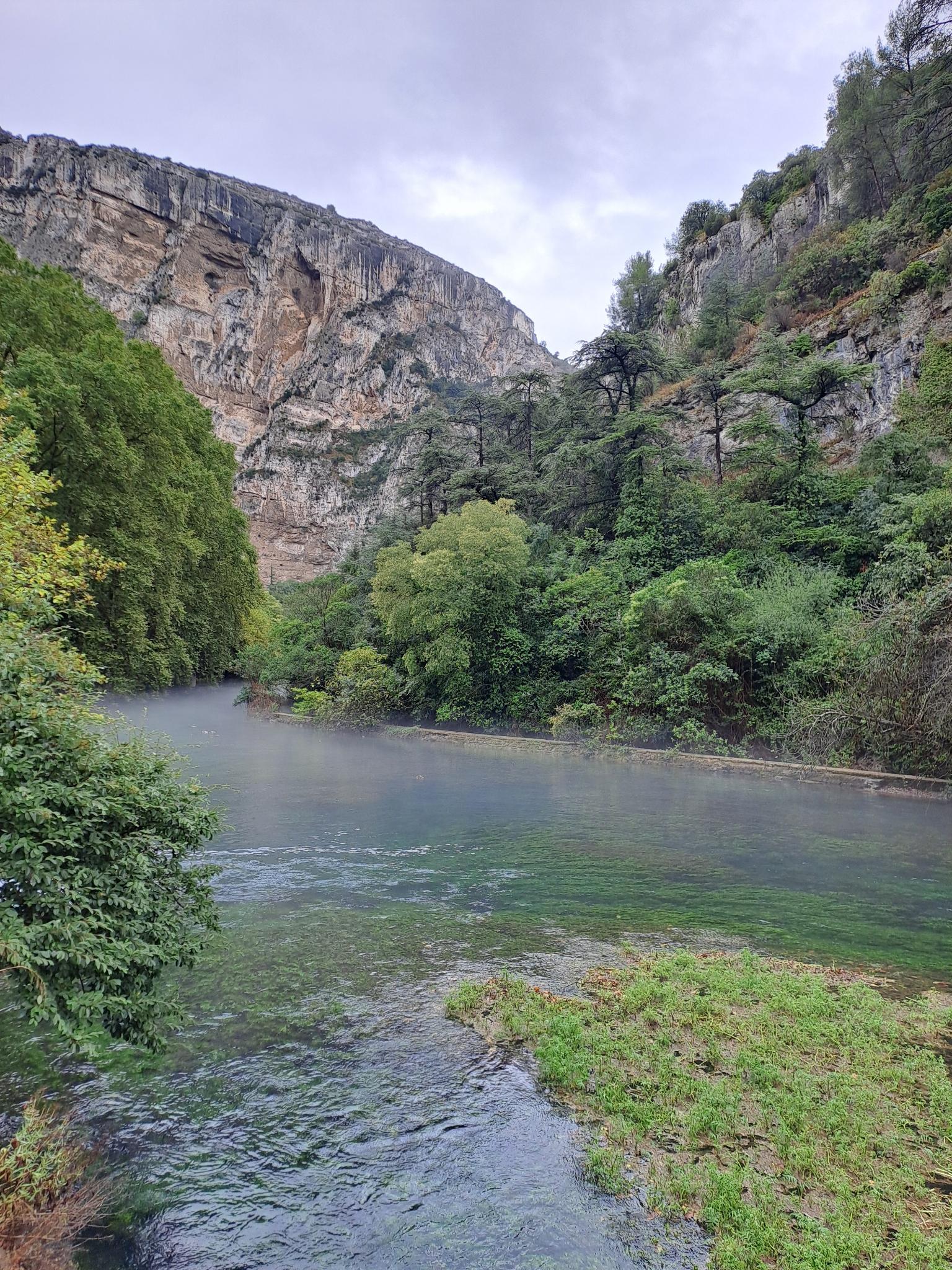 J’ai rejoins Maman et Gilles a la gare, chargé ma monture dans la fourgonnette et en route pour le point de départ, à L’isle-sur-la-sorgue. On arrive au village sous une pluie battante, et partons prendre nos quartiers au camping. L’après midi, on est allé faire un tour à la fontaine de Vaucluse en voiture vu la météo. Malheureusement, un rocher menace de s’écraser sur le chemin, celui ci est fermé à 150 seulement de l’arrivée à la fontaine. On ne peut même pas l’apercevoir. Maudit rocher !